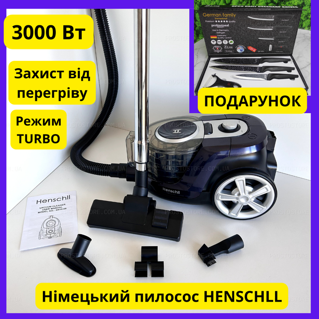 Колбовый пылесос Німеччина 3000W без мешка Henschll TURBO+ 4 л 3000W