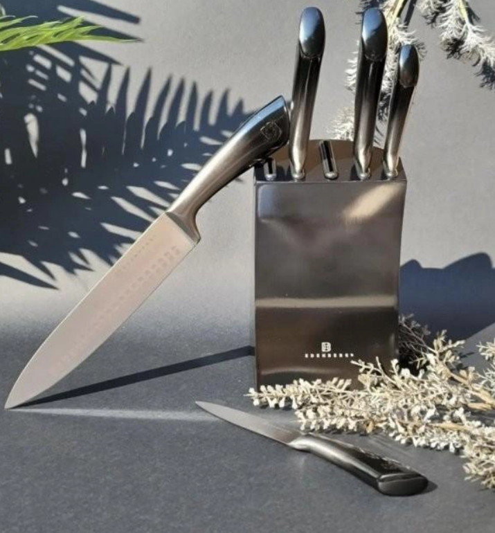 В комплект входить 5 ножів, підставка і подарункова упаковка.