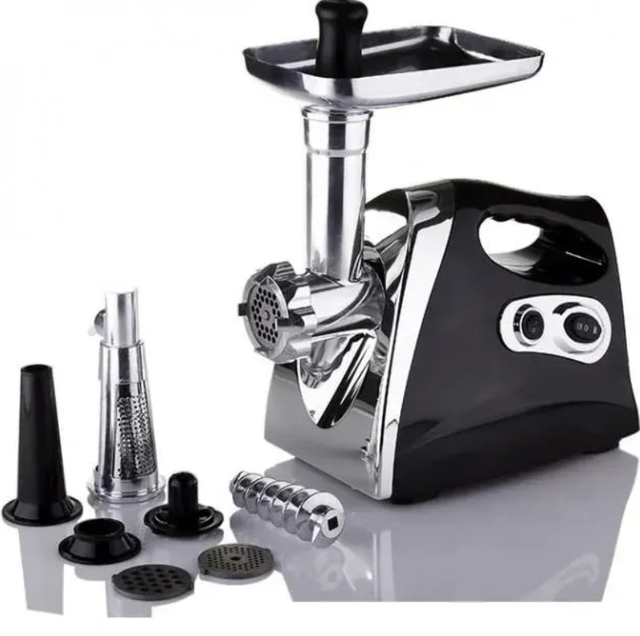 Електрична м’ясорубка 8в1 Domotec 4800W — з соковитискачем та овочерізкою, потужна м’ясорубка чорна